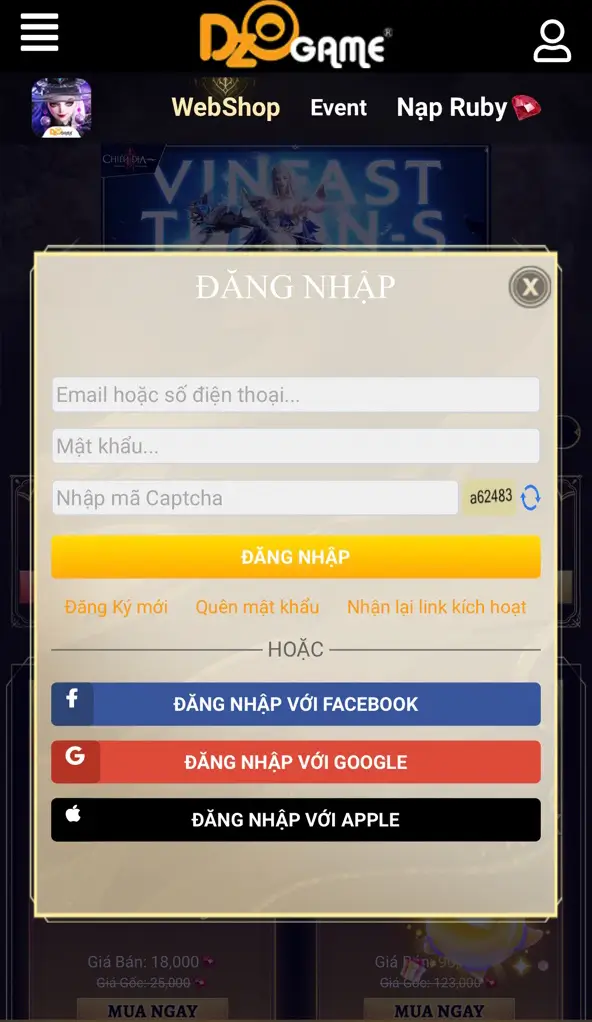 B1: Login tài khoản đã nạp Ruby, sau đó chọn gói nạp muốn mua