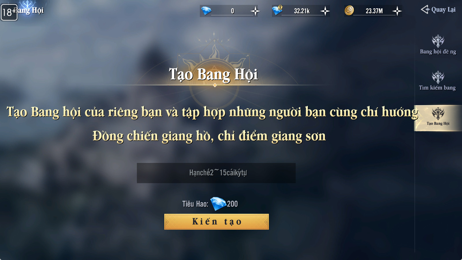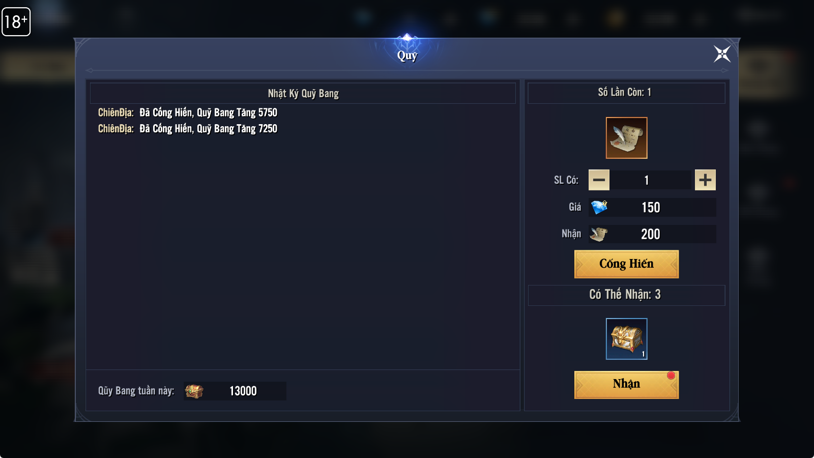 - Quyên góp Bang Hội, tham gia Tiệc Bang Hội, xây dựng Bang Hội có thể tăng điểm Cống Hiến Bang Hội.
