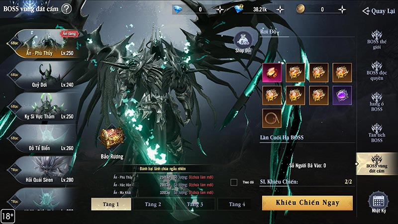 - Đánh bại BOSS trong thời gian quy định, nếu thất bại hoặc hết thời gian, bạn có thể thử thách lại, số lượt khiêu chiến và phiếu khiêu chiến sẽ không bị trừ.