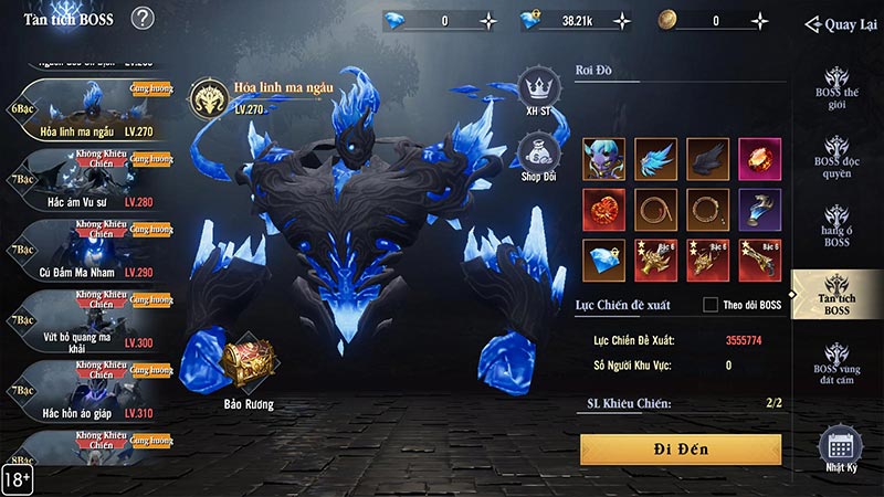 - Cấp độ BOSS càng cao thì đồ rơi càng nhiều, khi người chơi hơn BOSS 100Lv thì sẽ không có thưởng rơi.