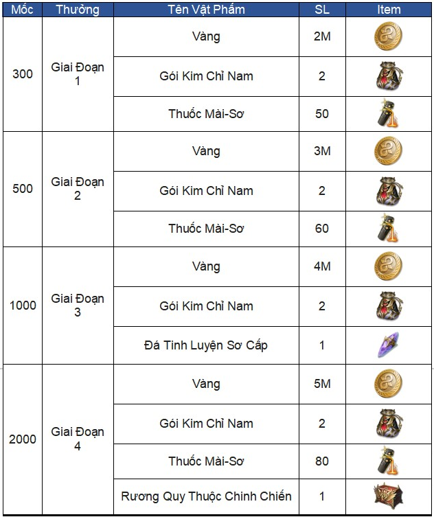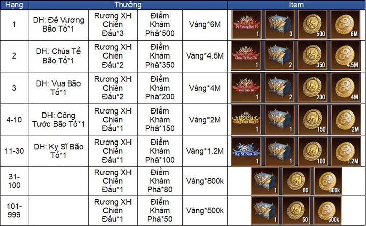 - Mỗi ngày lúc 4:00 sẽ reset Điểm Chiến Tích.