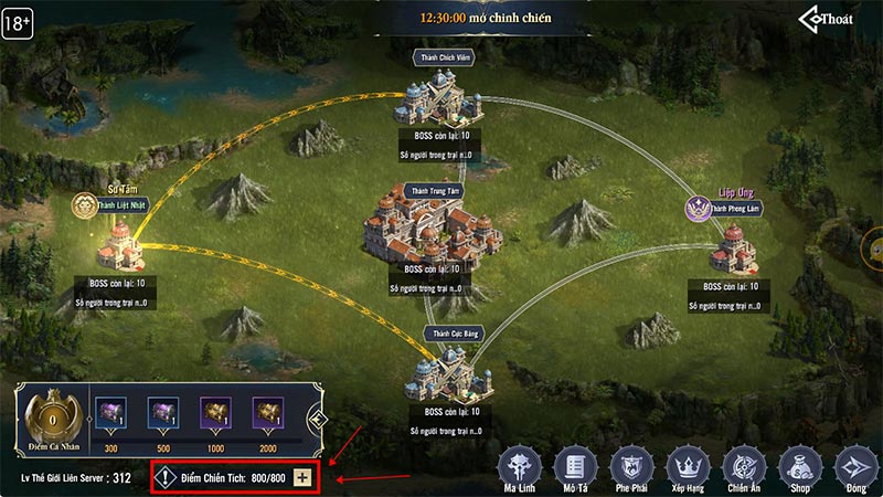 - Không đủ Điểm Chiến Tích không thể gây sát thương lên quái. Để khôi phục có thể dùng La Bàn Chiến.