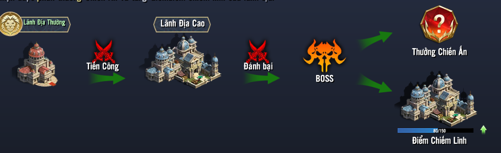 - Trận doanh sở hữu 80đ trước sẽ lập tức chiếm được lãnh địa.