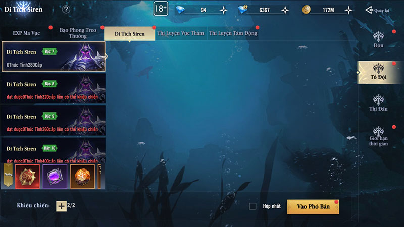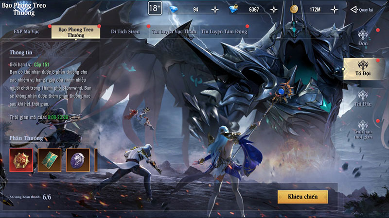 - Số lượt khiêu chiến đã hết, khi tiến vào hỗ trợ, sẽ nhận được thưởng hỗ trợ;