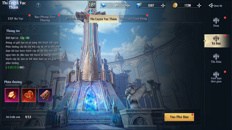 - Phó Bản hạn giờ, số tầng hoàn thành càng cao trong thời gian quy định thì phần thưởng càng nhiều.