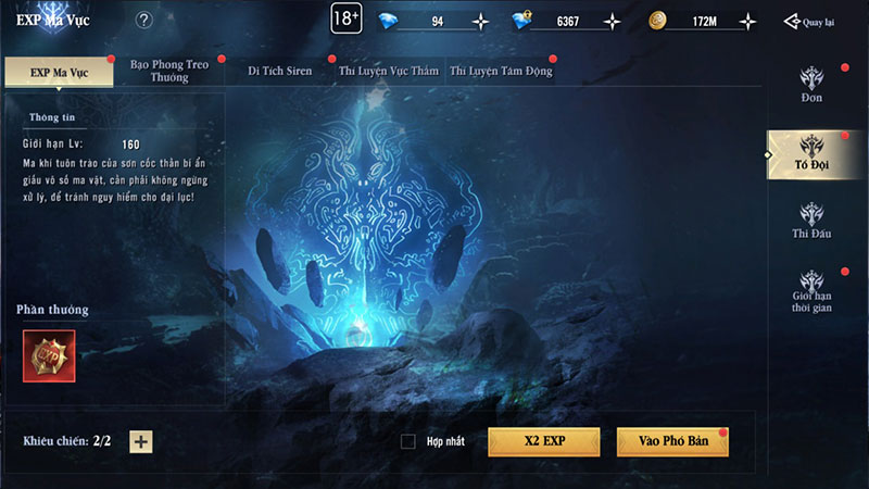 - Tiến vào cần số lượt + Vé Vào Ma Vực;