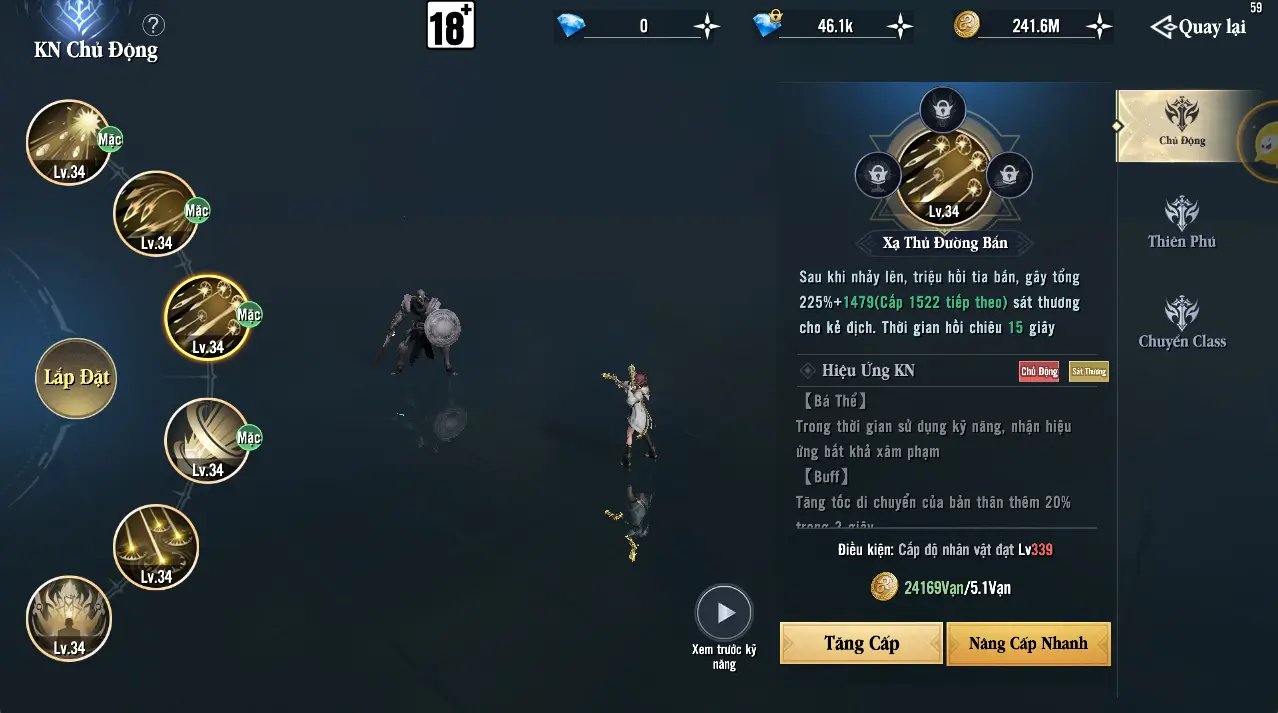 KN Chủ Động: Tăng cấp nhân vật để đạt điều kiện tăng cấp kỹ năng, tăng bậc thức tỉnh để kích hoạt bí kíp