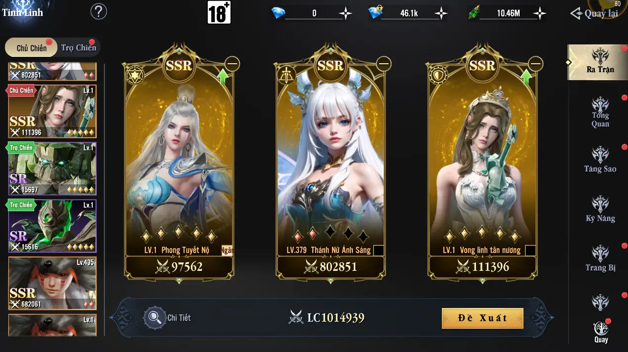 Ra Trận: Đạt level nhân vật và vượt ải Bí Cảnh Tinh Linh theo yêu cầu để mở thêm slot chủ chiến + trợ chiến